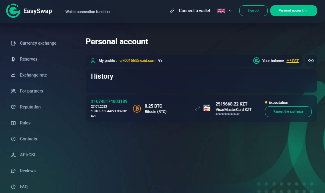- Subsequent checks can be paid with internal bonus EST tokens, which you automatically receive for each exchange on EasySwap as cashback.